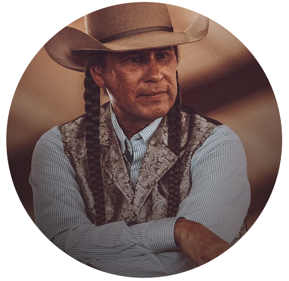 Mo Brings Plenty (Oglala Lakota) descends from warrior families — ancestors who stood at the Battle of the Little Bighorn. Globally recognized for Yellowstone, Bass Reeves, and Y: Marshals, Mo is also American Indian Affairs Coordinator for the Sheridan television multiverse (1883, 1923, Yellowstone), ensuring Native history, language, and ceremony are portrayed with dignity. He has spoken at Oxford, appeared at SXSW with Julian Lennon, and held an audience with King Charles III. He is more than an actor — he is a guardian of tradition, bridging ancestral wisdom into global storytelling.